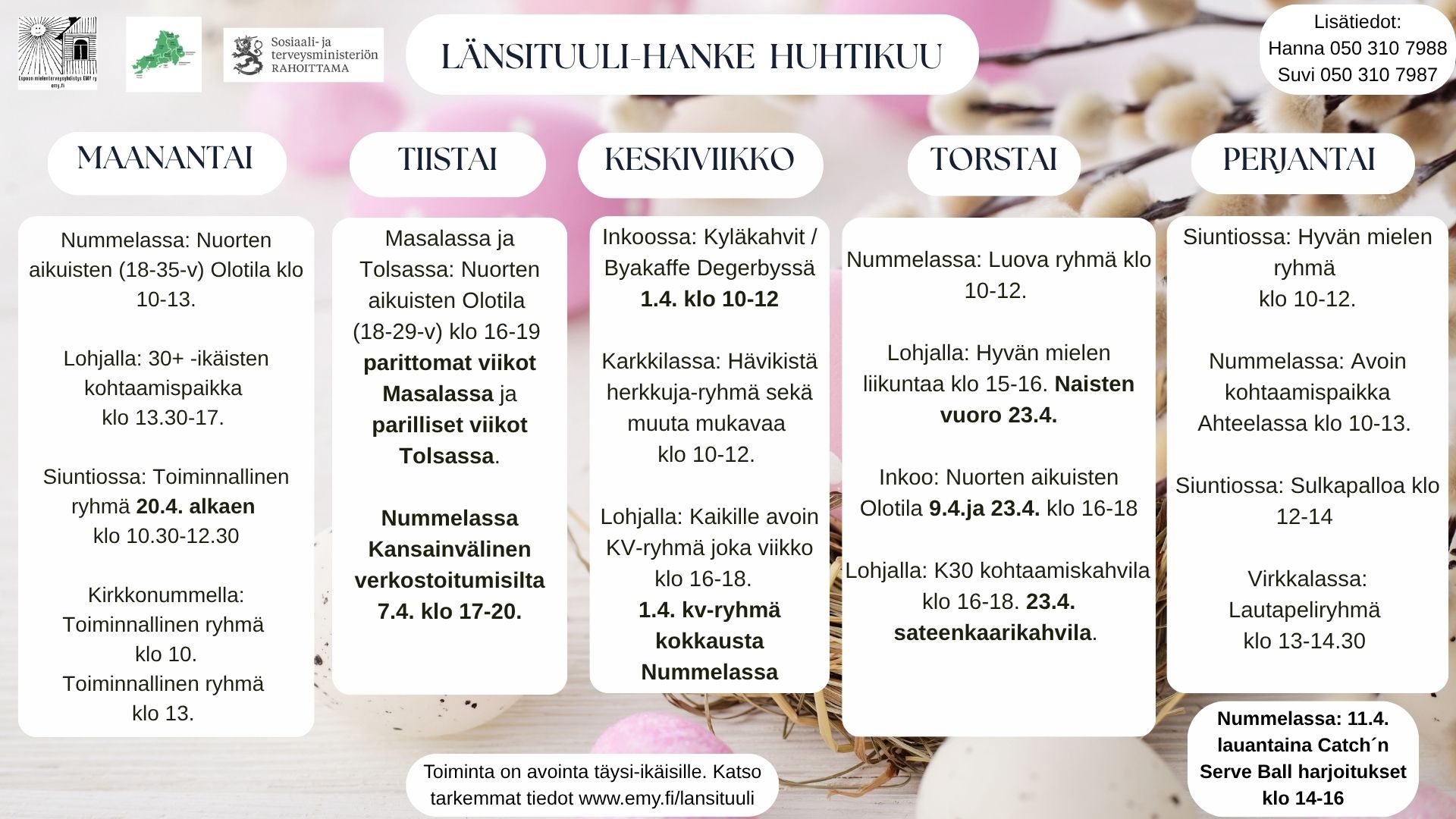 Lisätiedot Suvi 050 310 7987 tai Hanna 050 310 7988.